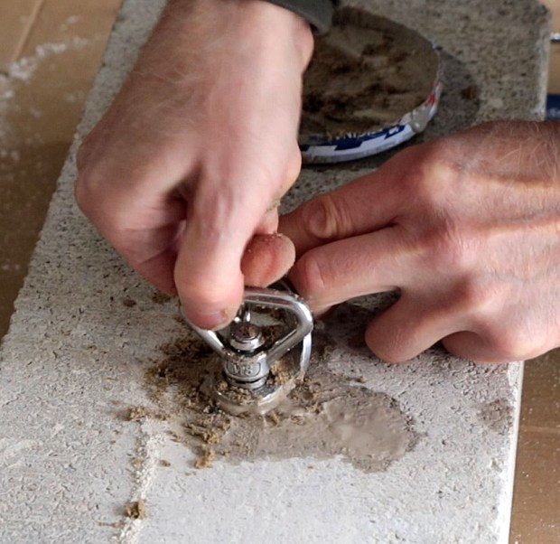 Expected pullout load in limestone having 1MPa (145 psi) tensile strength = 150 psi ⋅ 1.5 sqin = 225 pounds (or 112 pounds for 0.5 MPa tensile limestone)